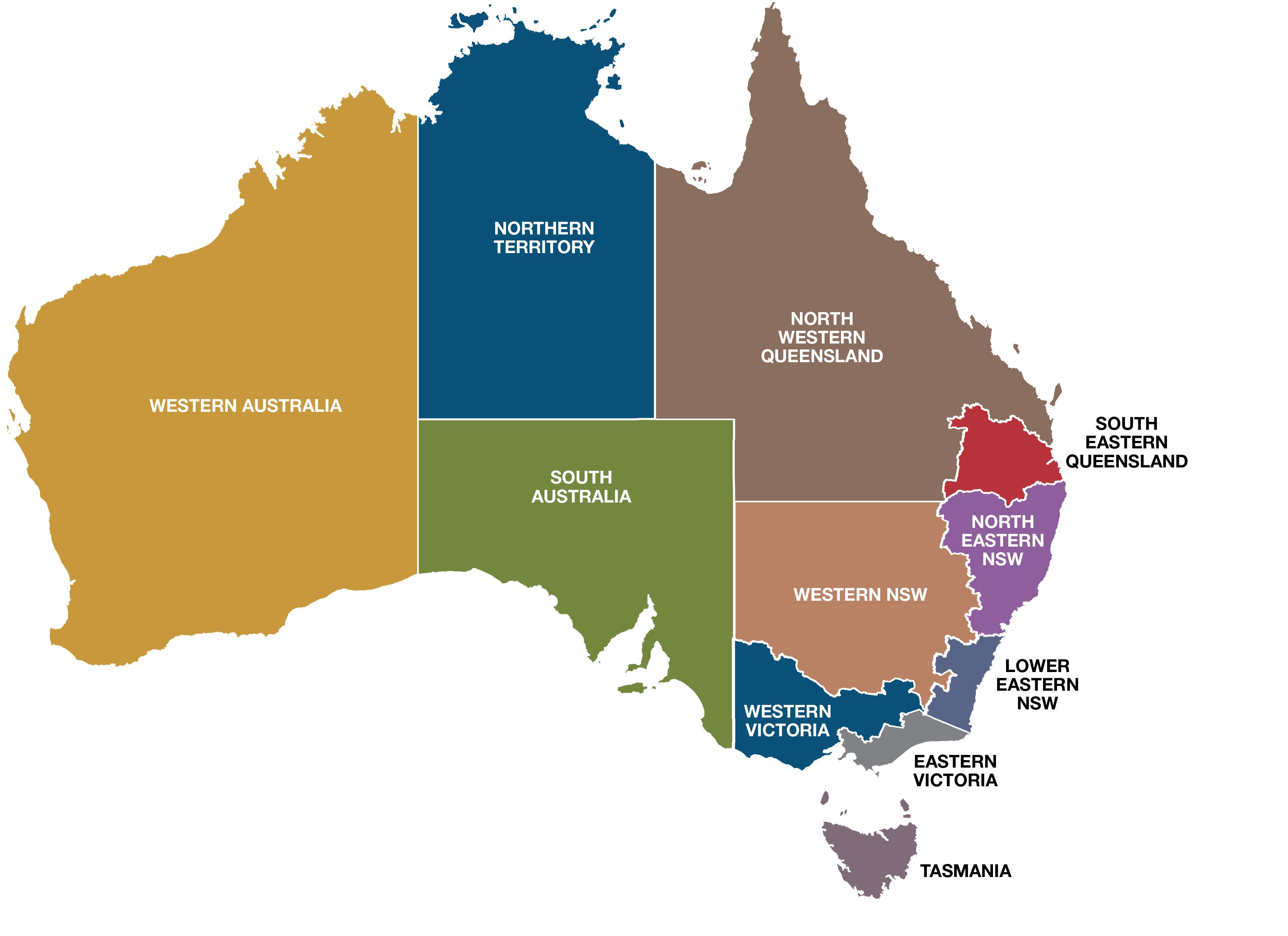 L'australie carte des régions
